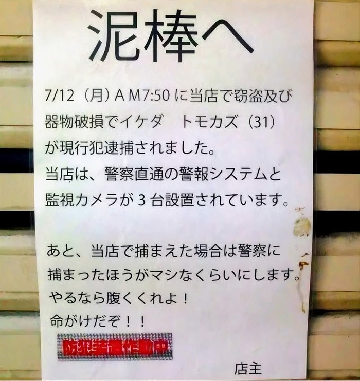 韓国人「ある日本の店舗が出した“泥棒への警告文”がネットで話題に」→「捕まった方がマシと思う対応とは一体…(ブルブル」
