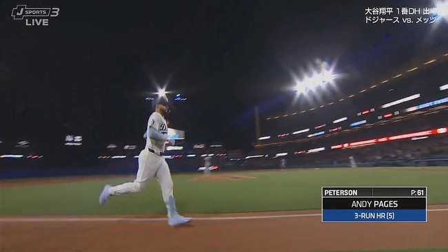 ドジャース・パヘス、第5号3ランホームラン!リードを3点に広げる!!!!!!!!!!!!!!!!