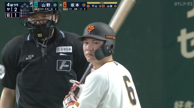 【巨人対ヤクルト2回戦】巨人・坂本、ヤクルト・山野から今季第1号ソロホームラン!再び1点差に詰め寄る!!!!!!!!!!!!!!!