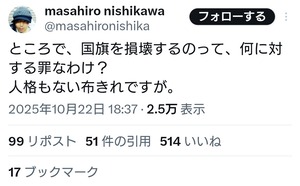 通名パヨさん「ところで、国旗を損壊するのって、何に対する罪なわけ?人格もない布きれですが」