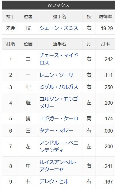 村上の抜けたホワイトソックス打線wwywywywywywywwywy