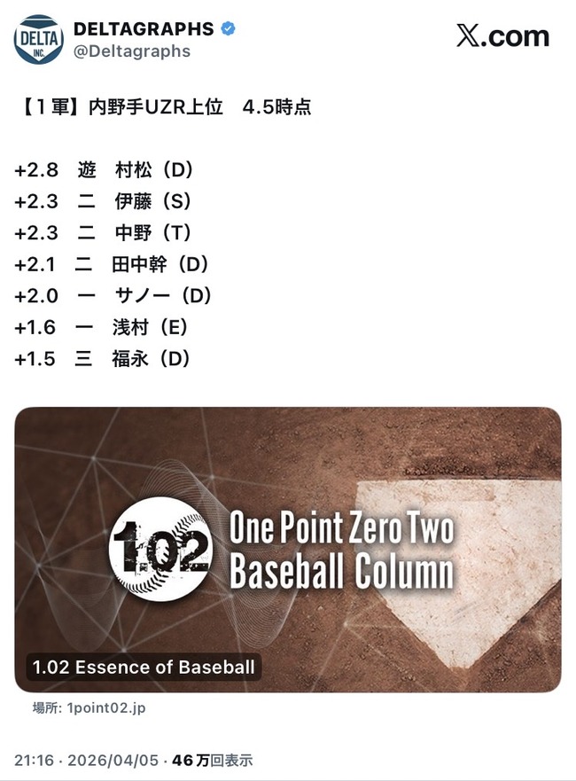 【朗報】中日サノーUZR2.0
