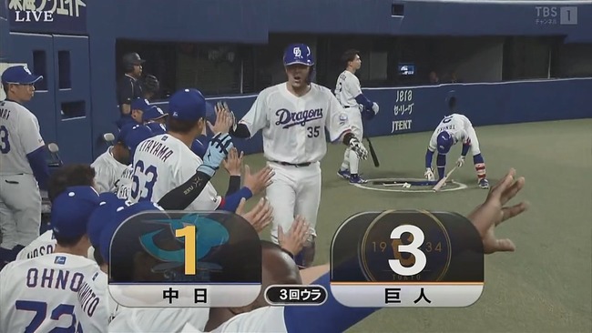 【中日対巨人2回戦】中日、3回裏1アウト一三塁から岡林の犠牲フライで2点差に迫る!!!!!!!!